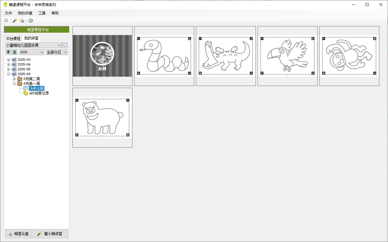 实际上,我国幼儿园课程改革的根本目的就是要完善幼儿园课程,解决幼儿园课程中存在的核心问题,使其真正适合本园幼儿发展的需要,适合本园发展的实际,适合本园的资源和条件,更有效地促进幼儿的发展和教师的专业成长,更好地提升幼儿园的教育质量。蜂堡园本课平台应运而生!它以蜂堡课程平台为基础,整合了蜜小蜂讲堂、蜂堡云盘和ADT观察记录系统,为幼儿园打造自己的课程体系及特色,提供了一个有效的工具。