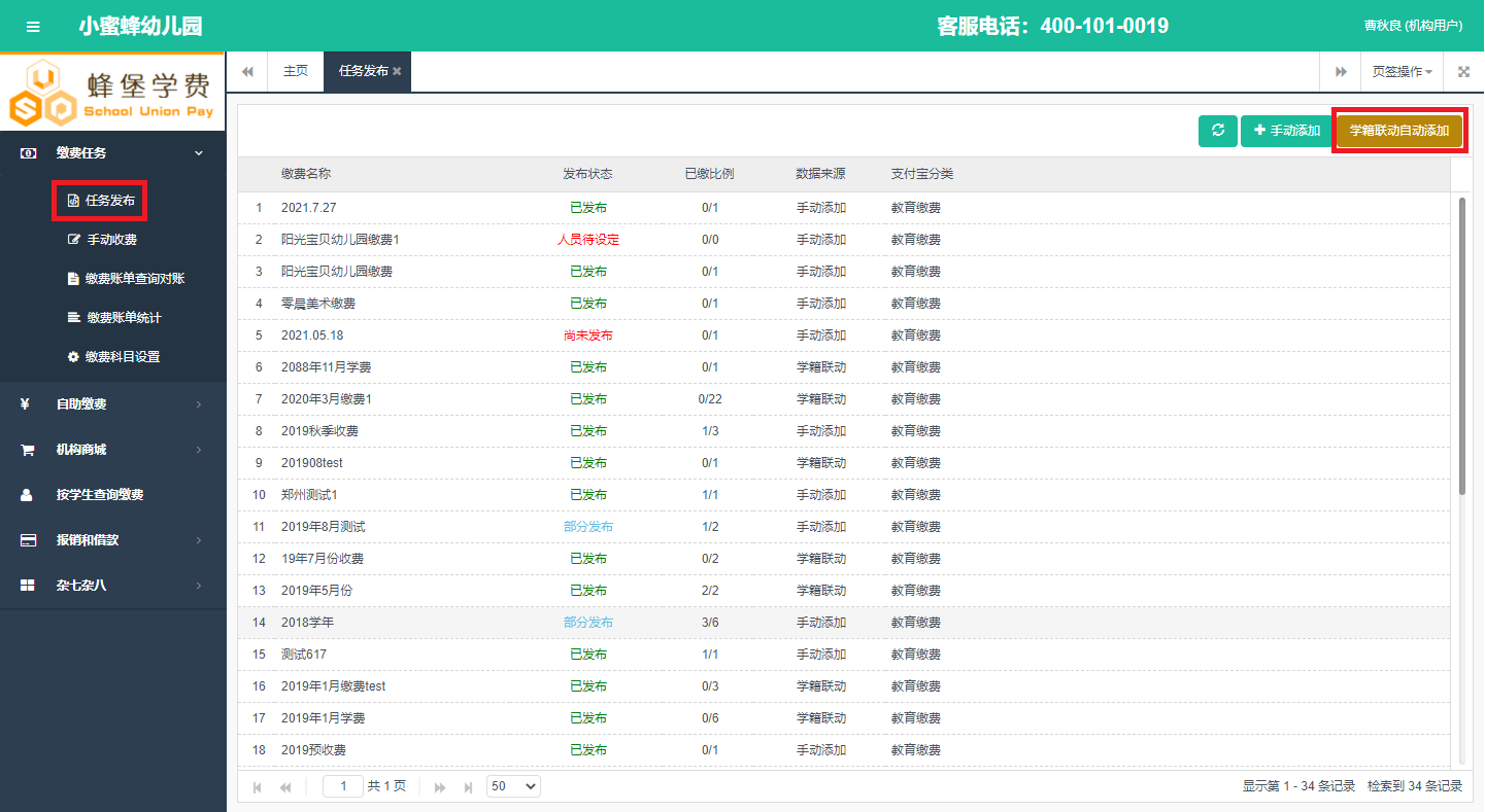 操作方法:缴费任务-任务发布-学籍联动自动添加