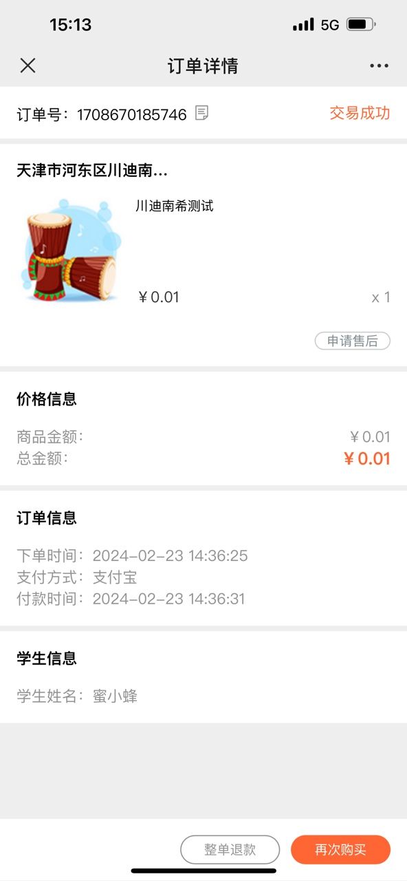 购买成功后,买家在“蜂堡”公众号,会收到如图1所示的消息。点击进入,可以看到“整单退款”按钮,然后跟随系统提示进行操作即可。